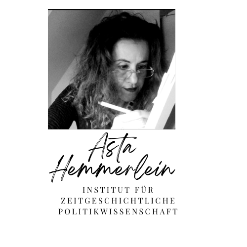 Ich bin Astrid – Asta – Hemmerlein. Diplom-Politikwissenschaftlerin mit Schwerpunkt Zeitgeschichte. Meine Ausbildung genoss ich bei Simon WIesenthal, Wolfgang Scheffler und Wolfgang Benz. Ich arbeitete am Dokumentationszentrum für Verfolgte des Naziregimes e. V. in Wien und am Zentrum für Antisemitismusforschung in Berlin. Mein Studium beendete ich mit einer Arbeit über Sinti und Roma im System Heinrich Himmlers.